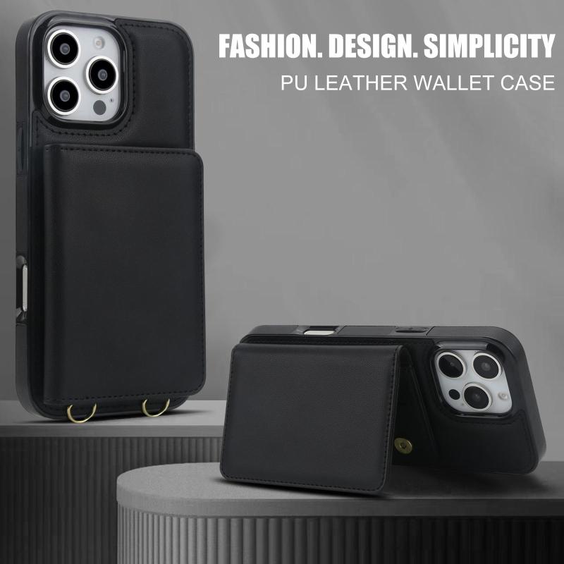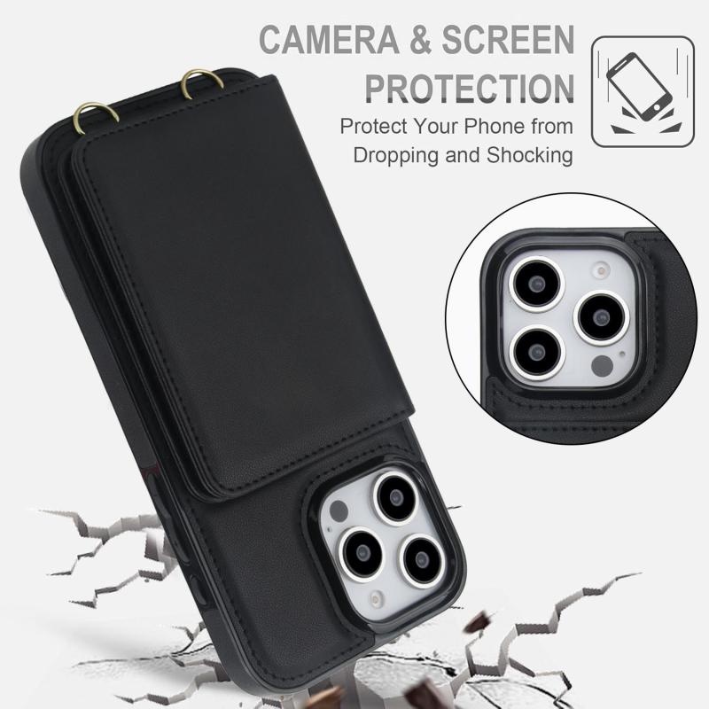 For iPhone 16 Pro Crossbody Dual-buckle Wallet RFID Back Leather Phone Case(Black)