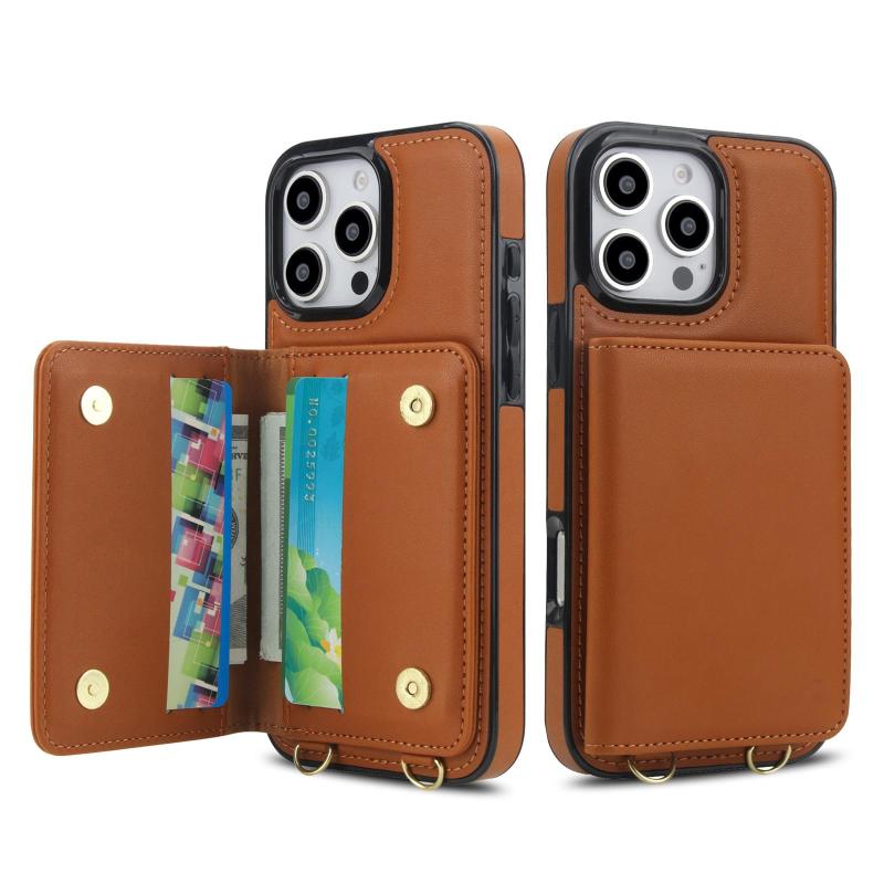 For iPhone 16 Pro Crossbody Dual-buckle Wallet RFID Back Leather Phone Case(Brown)