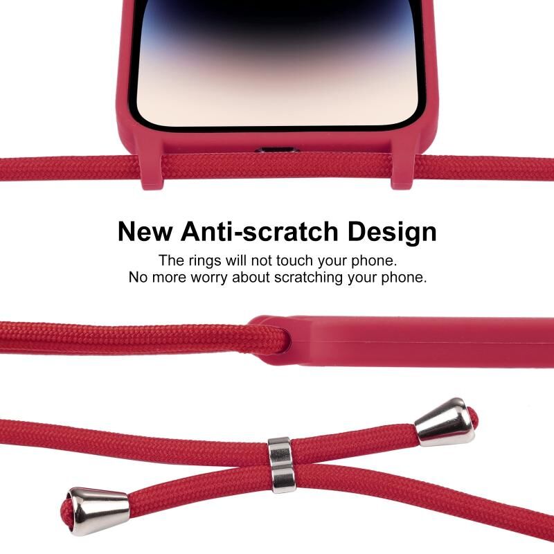 Θήκη για iPhone 16 Pro με Λουράκι Χιαστί από Υγρή Σιλικόνη (Κόκκινο Ρόδι)