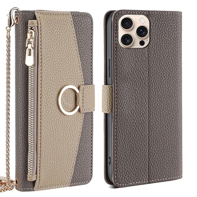 For iPhone 16 Pro Crossbody Litchi Texture Leather Phone Case(Grey)