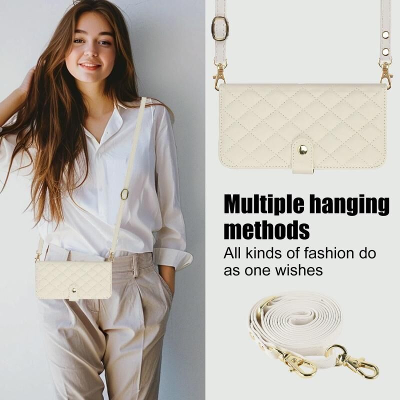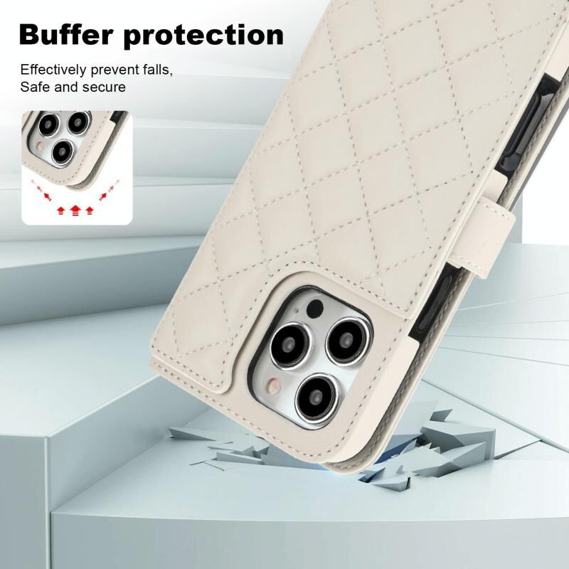 Θήκη τηλεφώνου για iPhone 16 Pro, πολυλειτουργική, δερμάτινη με ρόμβους, σε στυλ crossbody (Λευκό)