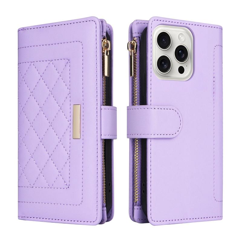 For iPhone 16 Pro Crossbody Zipper Wallet Rhombus Leather Phone Case(Purple)