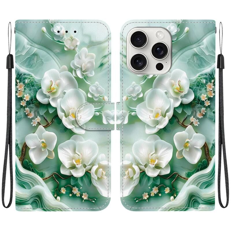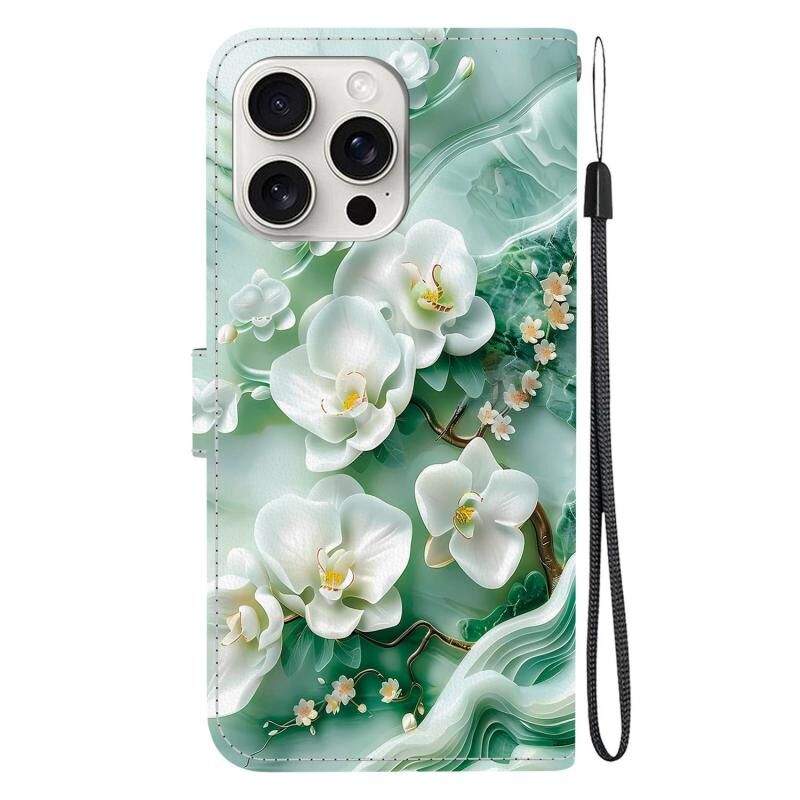 For iPhone 16 Pro Crystal Texture Colored Drawing Leather Phone Case(Jade Flowers)