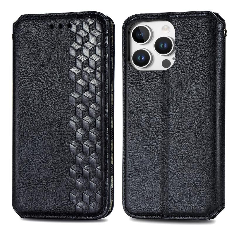 For iPhone 16 Pro Cubic Grid Pressed Magnetic Leather Phone Case(Black)