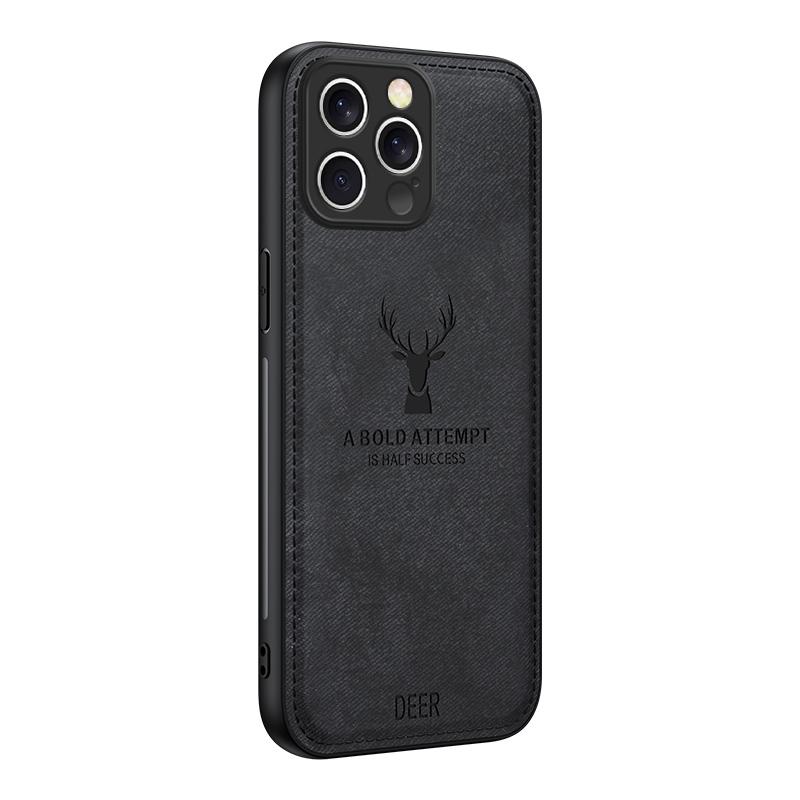 For iPhone 16 Pro Deer Head Cloth Skin All-inclusive Phone Case(Black)