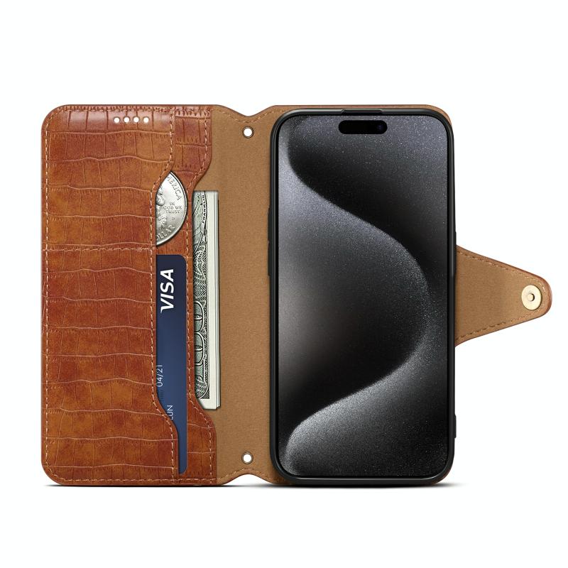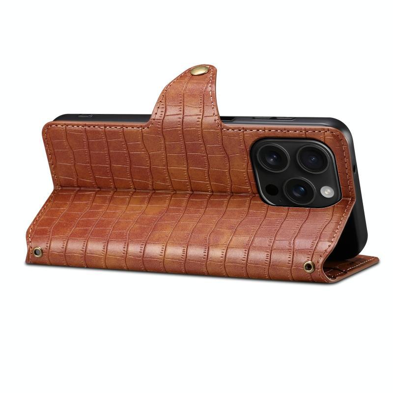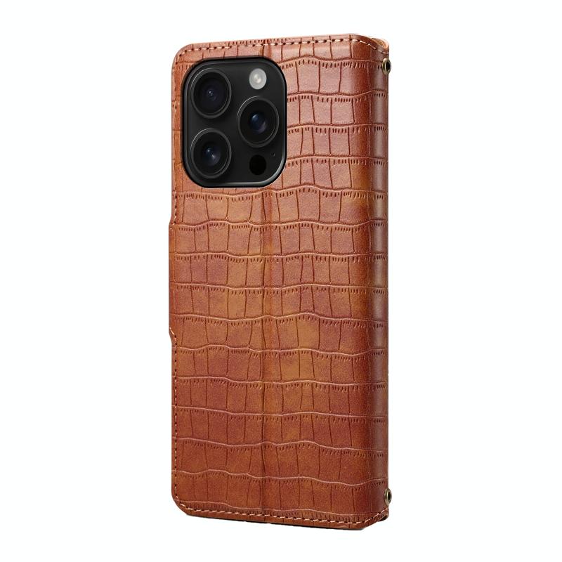 For iPhone 16 Pro Denior Crocodile Texture Oil Edge Leather Phone Case(Brown) (Denior)