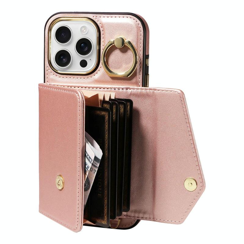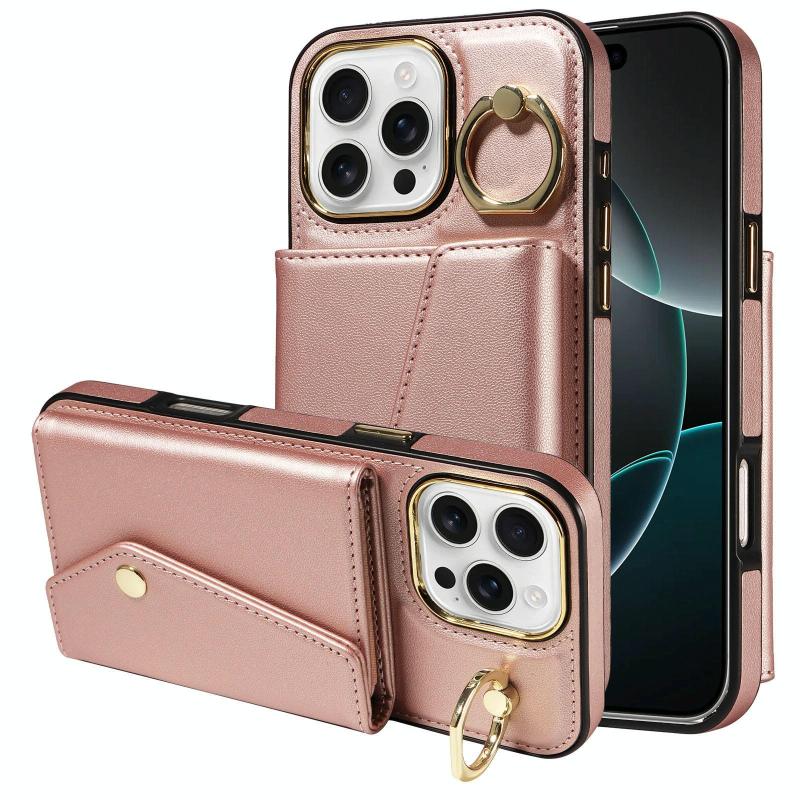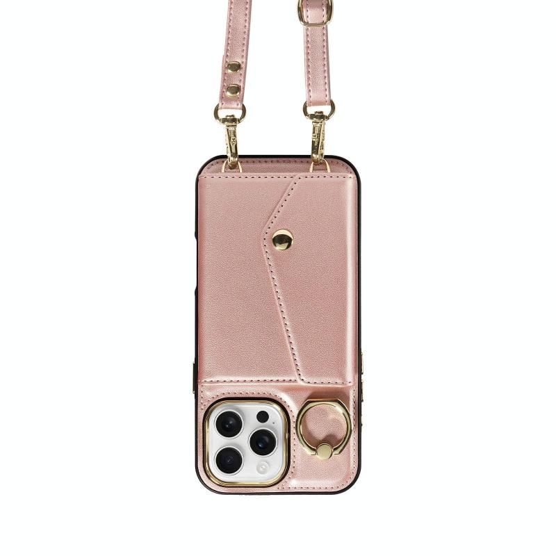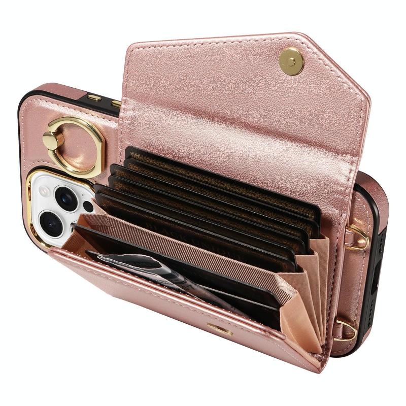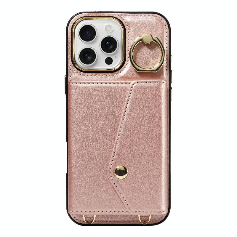 For iPhone 16 Pro Diagonal Crossbody Ring Organ Wallet Leather Back Phone Case(Rose Gold)