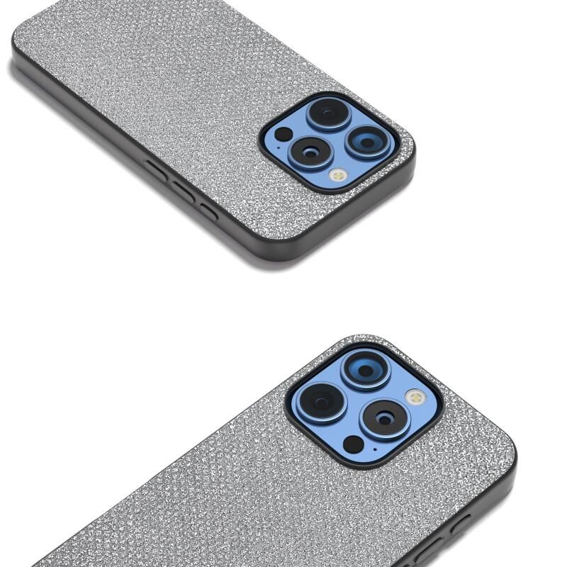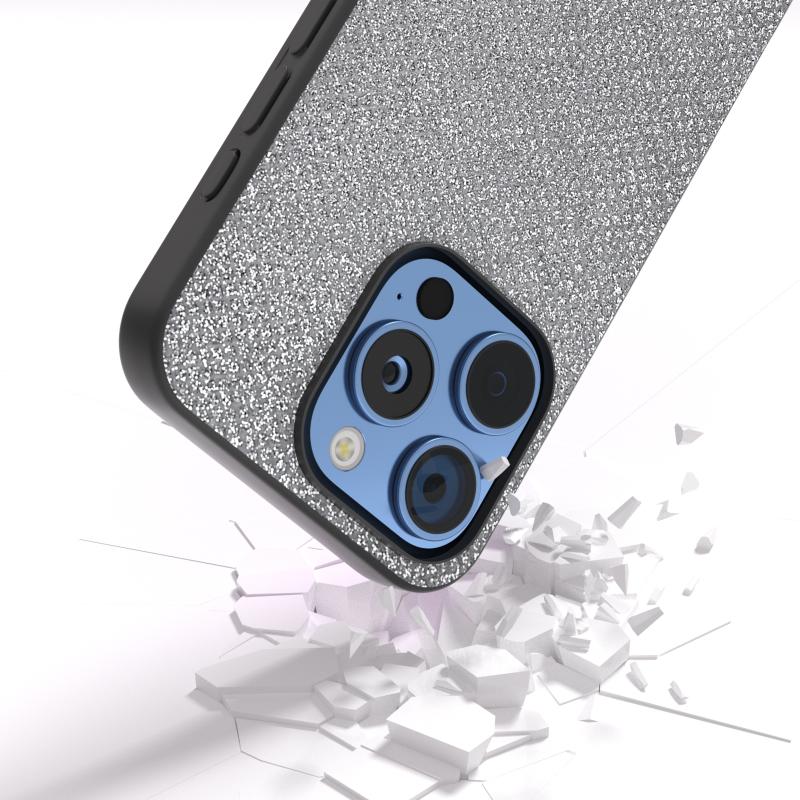 For iPhone 16 Pro Diamond Black Frame Phone Case(Jewel Silver)