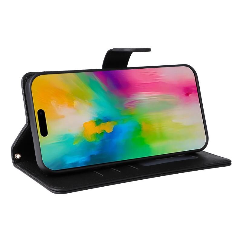 Θήκη για iPhone 16 Pro, Δερμάτινη με ανάγλυφο σχέδιο διαμαντιού, Πτυσσόμενη (Λευκό)