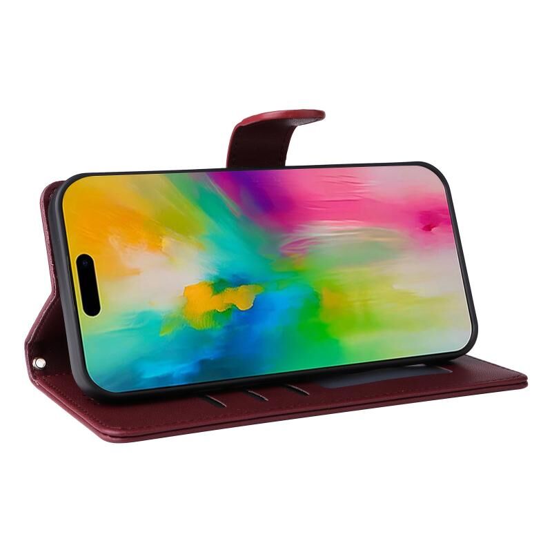 Θήκη για iPhone 16 Pro, Δερμάτινη με ανάγλυφο σχέδιο διαμαντιού, Πτυσσόμενη (Λευκό)