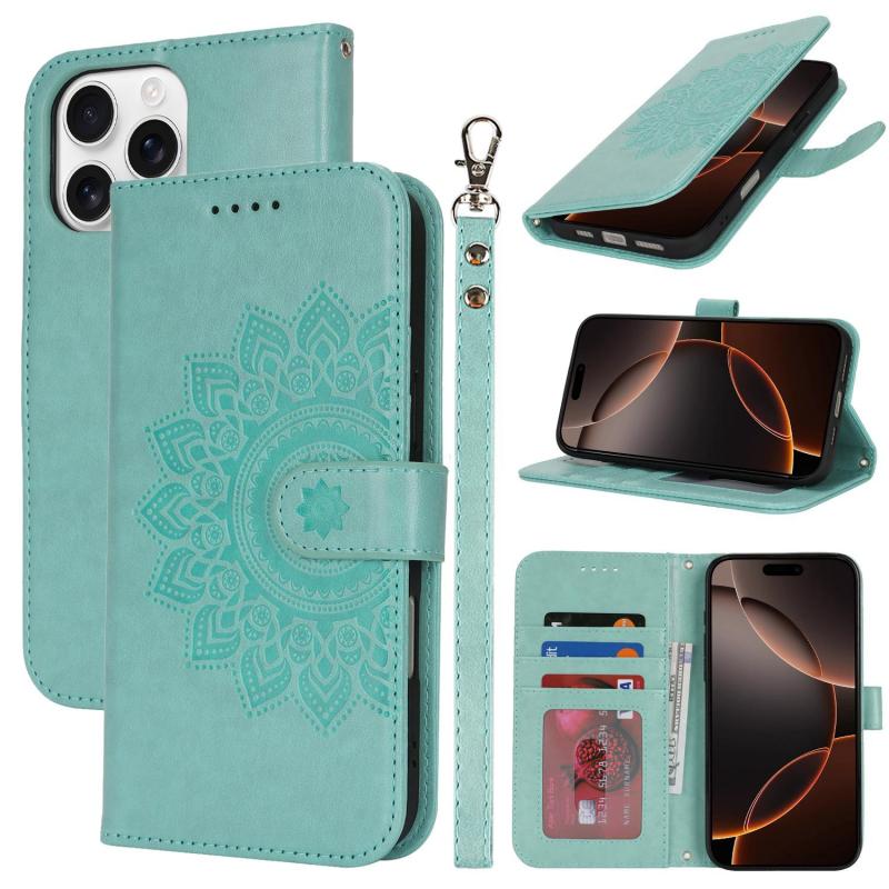 For iPhone 16 Pro Double Fold Printed Embossing Leather Phone Case(Mint Green)
