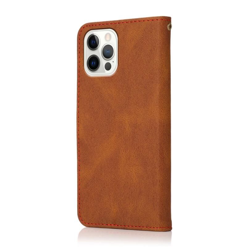 For iPhone 16 Pro Dual-color Stitching Leather Phone Case(Brown Red)