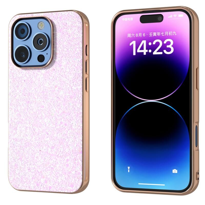 Θήκη τηλεφώνου με ηλεκτρολυτική επιμετάλλωση και πολύχρωμη λάμψη για iPhone 16 Pro (Σκούρο Ροζ)