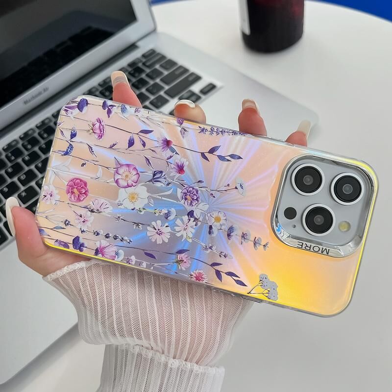 Θήκη τηλεφώνου TPU με ηλεκτρολυτική επίστρωση και λουλουδάτο σχέδιο λέιζερ για iPhone 16 Pro (Φύλλα AH12)