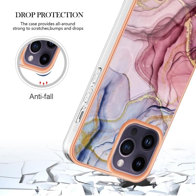 For iPhone 16 Pro Electroplating Marble Dual-side IMD Phone Case(Rose Red 014)