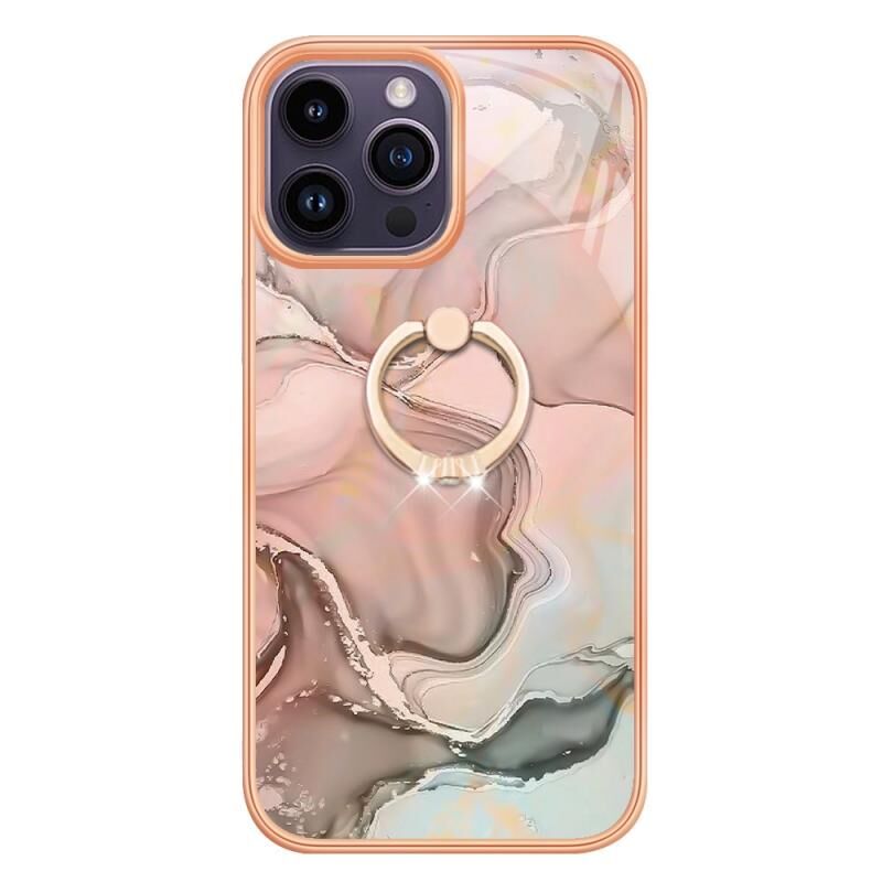 For iPhone 16 Pro Electroplating Marble Dual-side IMD Phone Case with Ring(Rose Gold 015)