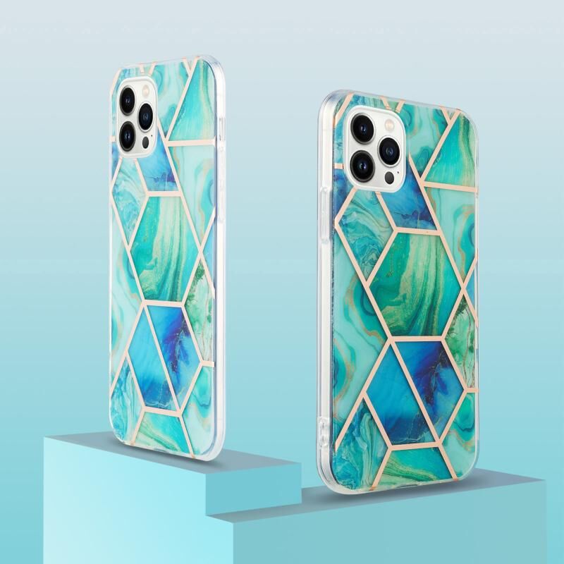 For iPhone 16 Pro Electroplating Splicing Marble Flower Pattern Dual-side IMD TPU Shockproof Phone Case(Green)