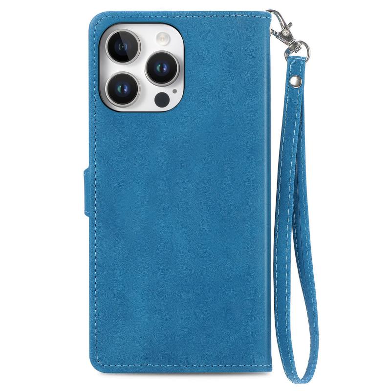 For iPhone 16 Pro Embossed Flower Zipper Leather Phone Case(Blue)
