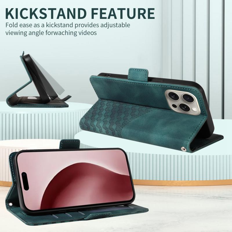 For iPhone 16 Pro Embossed Rhombus Starry Leather Phone Case(Green)