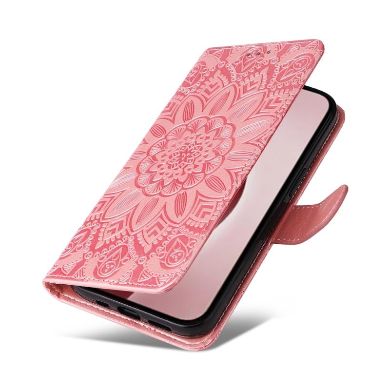 For iPhone 16 Pro Embossed Sunflower Leather Phone Case(Pink)