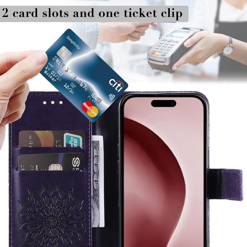 Θήκη τηλεφώνου από δέρμα με σχέδιο ηλιοτρόπιου σε ανάγλυφο για iPhone 16 Pro (Μωβ)