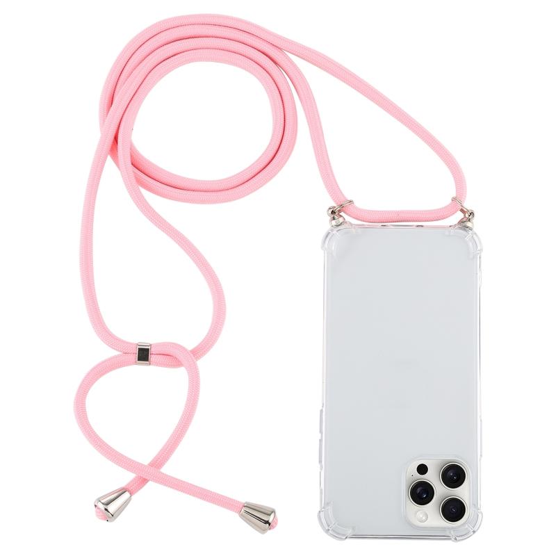Θήκη για iPhone 16 Pro Διαφανής TPU με προστασία από κραδασμούς στις τέσσερις γωνίες με κορδόνι (Ανοιχτό Ροζ)