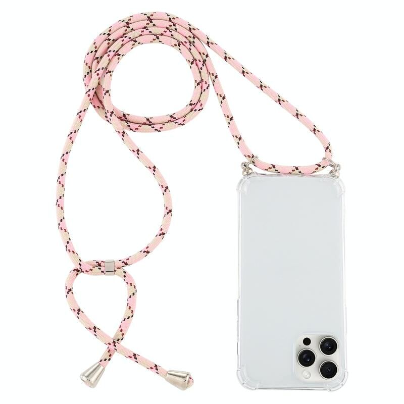 Θήκη για iPhone 16 Pro, Διαφανής TPU ανθεκτική σε κρούσεις στις τέσσερις γωνίες με κορδόνι (Ροζ Κίτρινο)