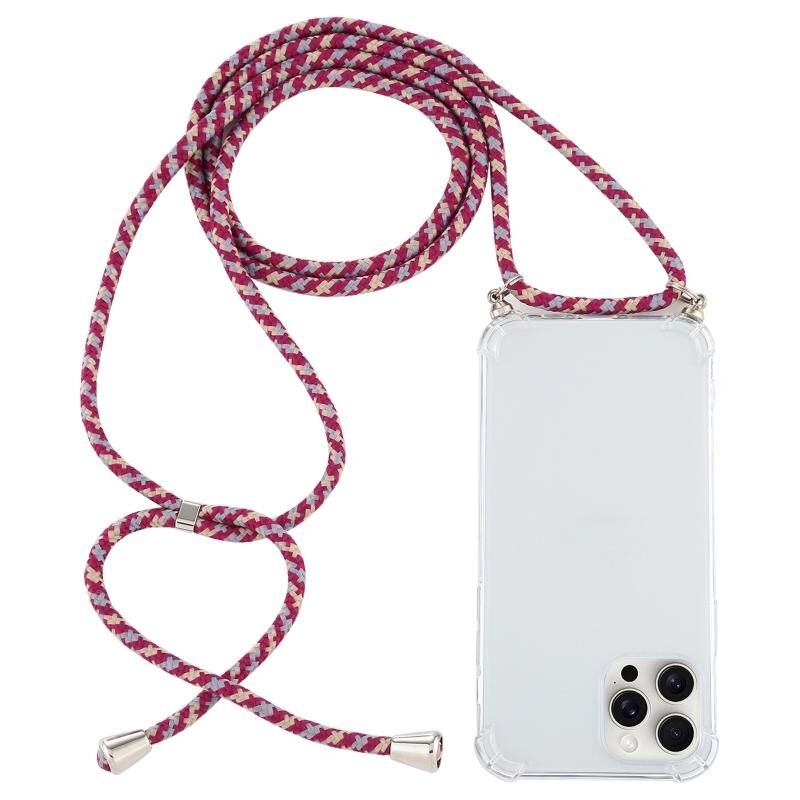 Θήκη για iPhone 16 Pro, Διαφανής TPU ανθεκτική σε κρούσεις στις τέσσερις γωνίες με κορδόνι (Ροζ)