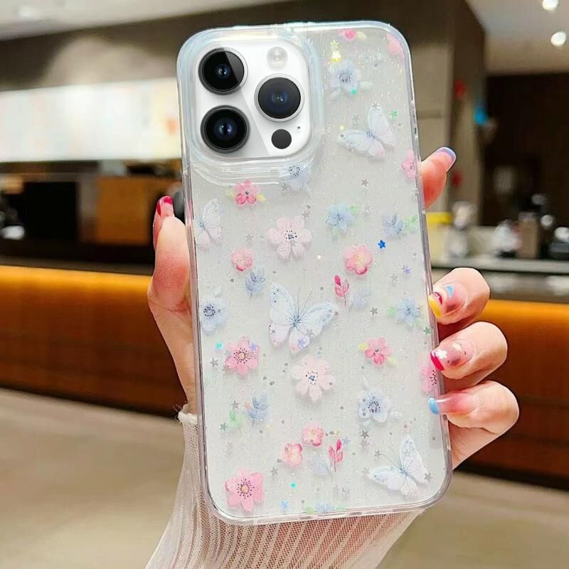 Θήκη τηλεφώνου για iPhone 16 Pro, Φρέσκο Μικρό Λουλουδάτο Εποξειδικό TPU (D06 Αγάπη Πεταλούδας)