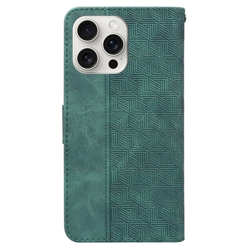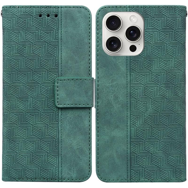 Για iPhone 16 Pro Γεωμετρική ανάγλυφη δερμάτινη θήκη τηλεφώνου (πράσινο)