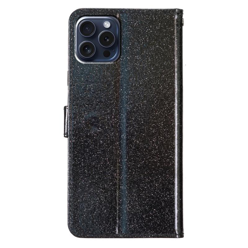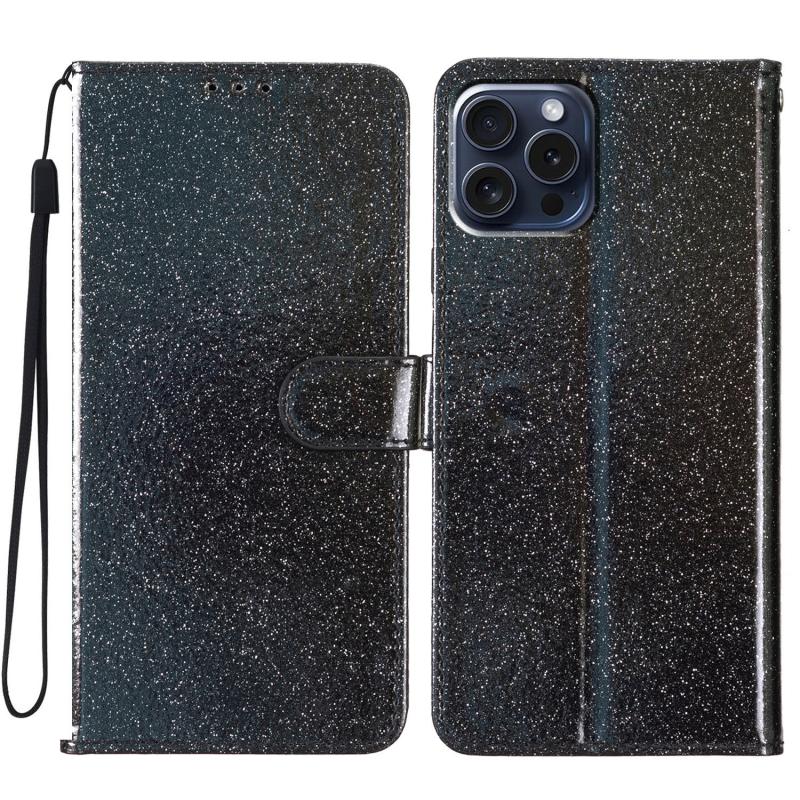 For iPhone 16 Pro Glitter Powder Flip Leather Phone Case(Black)