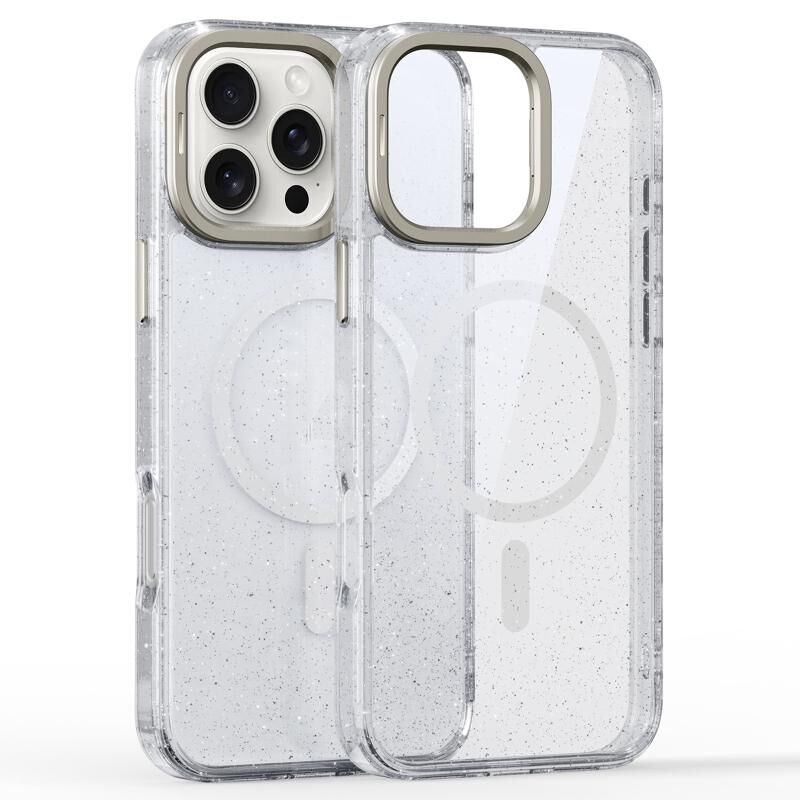 For iPhone 16 Pro Glitter Powder Lens Holder MagSafe Magnetic Phone Case(Transparent)