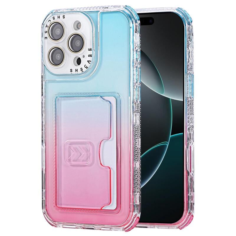 For iPhone 16 Pro Gradient Color TPU + PC Card Slot Full Coverage Phone Case(Sky Blue Pink)