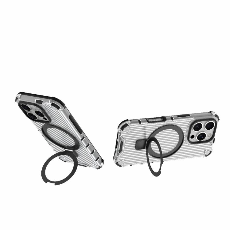 For iPhone 16 Pro Grating Holder Shockproof Phone Case(Transparent)