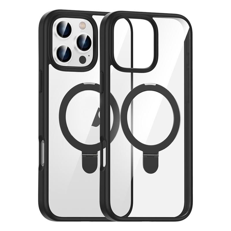 For iPhone 16 Pro High Transparency MagSafe Holder Phone Case(Black)