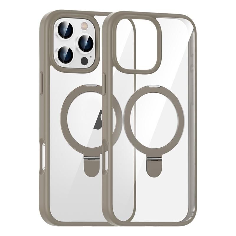 For iPhone 16 Pro High Transparency MagSafe Holder Phone Case(Titanium Gold)