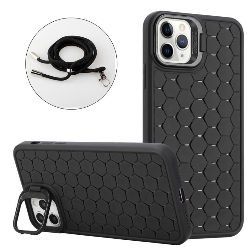 Θήκη τηλεφώνου MagSafe για iPhone 16 Pro με βάση φακού τύπου κυψελωτού που ακτινοβολεί και λουρί (Μαύρο)