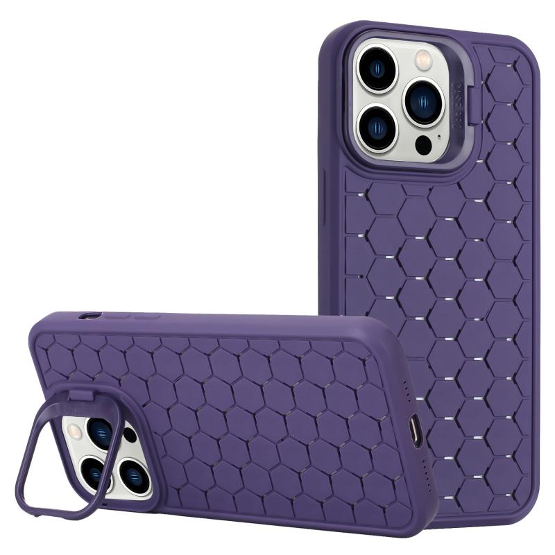 For iPhone 16 Pro Honeycomb Radiating Lens Holder TPU Phone Case(Purple)