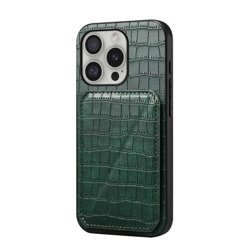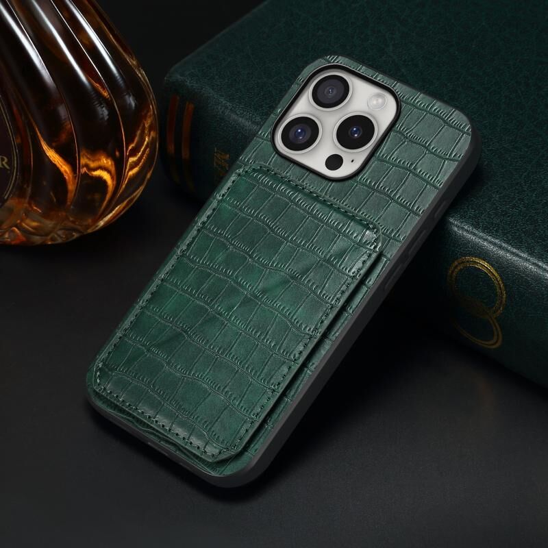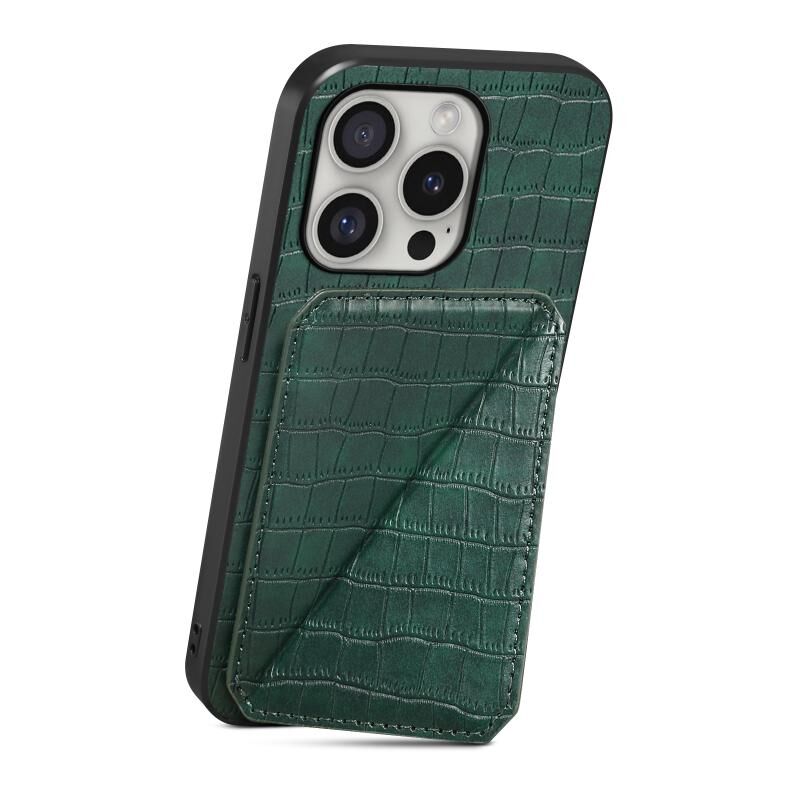 Θήκη τηλεφώνου για iPhone 16 Pro με απομίμηση δέρματος κροκόδειλου και βάση στήριξης (Μαύρο)