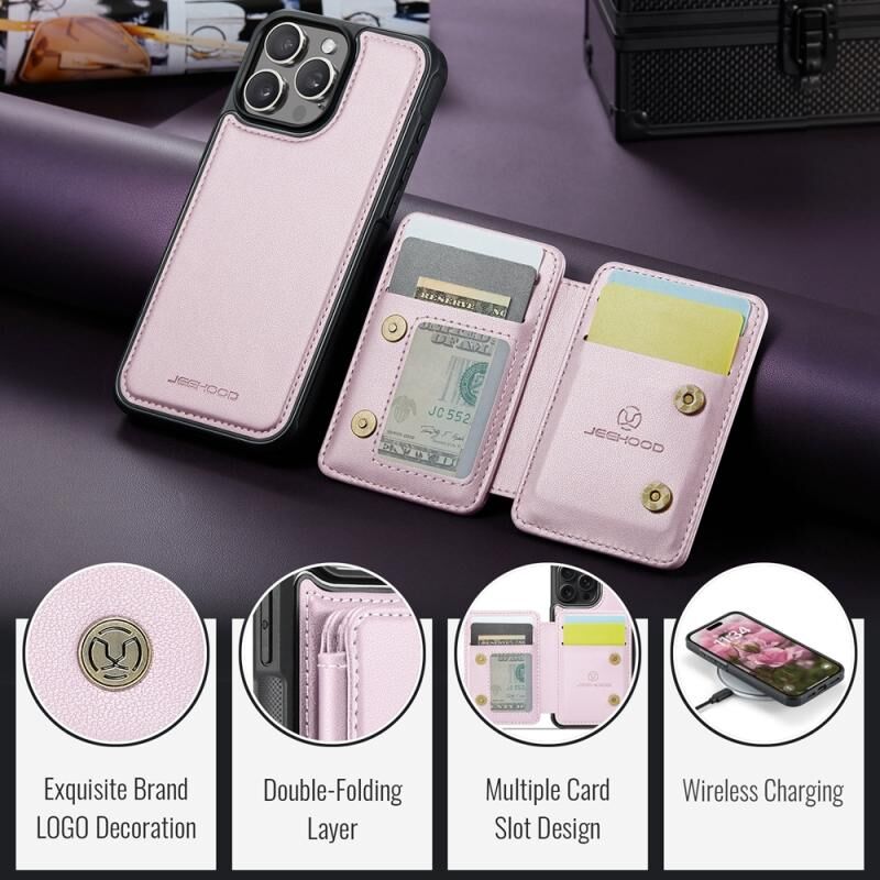 For iPhone 16 Pro JEEHOOD J05 Business Magnetic Style RFID Leather Phone Case(Pink) (JEEHOOD)
