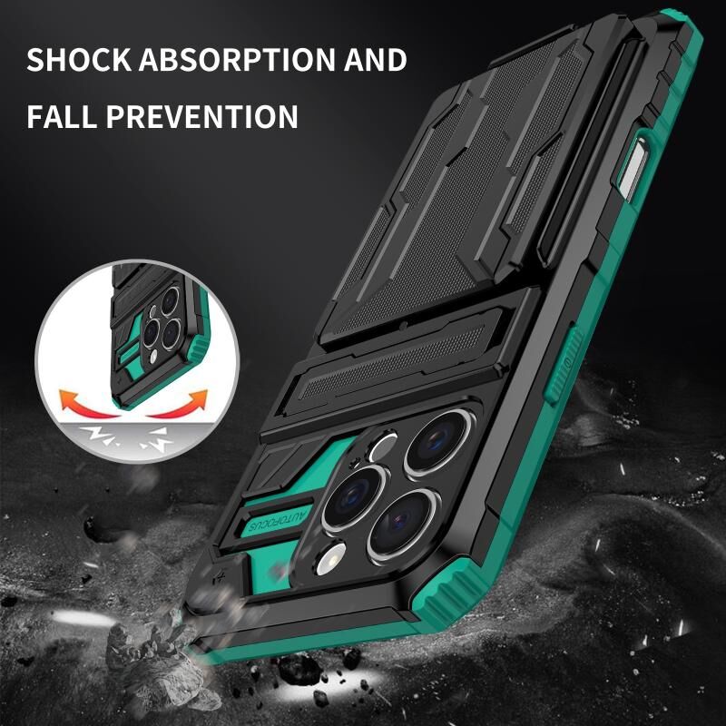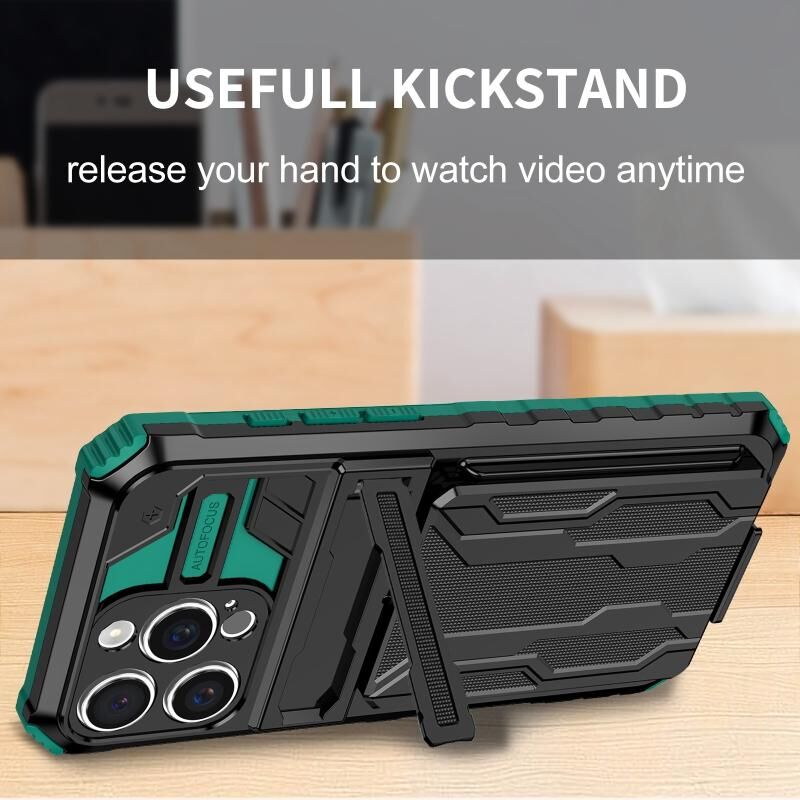 Θήκη τηλεφώνου με βάση στήριξης, θωράκιση και θήκη καρτών για iPhone 16 Pro (Μπλε)