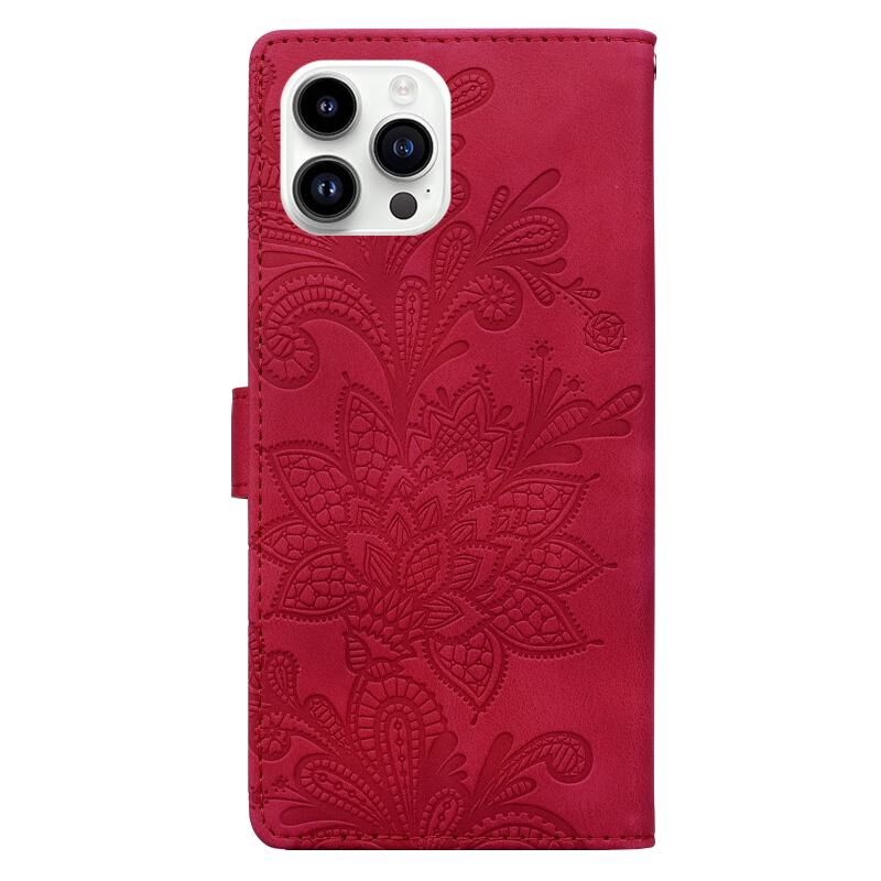 Θήκη τηλεφώνου για iPhone 16 Pro με δαντελένιο λουλουδάτο ανάγλυφο, μαγνητικό κούμπωμα και λουρί καρπού (Πράσινο)
