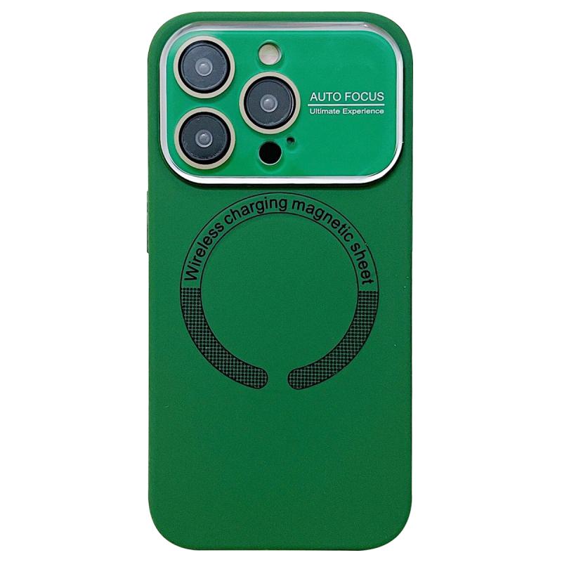 For iPhone 16 Pro Large Window Acrylic Glass Lens MagSafe Silicone Phone Case(Dark Green)