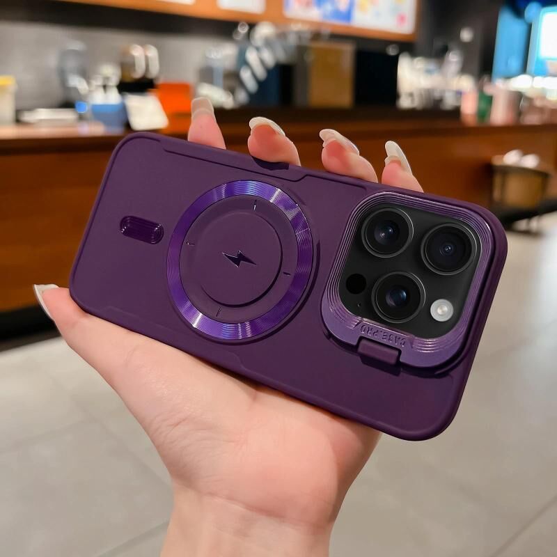 For iPhone 16 Pro Lens Frame Holder Blade MagSafe Phone Case(Dark Purple)