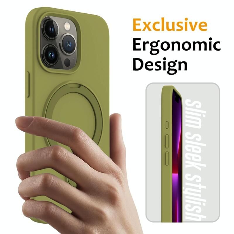 Θήκη τηλεφώνου με μαγνητική σύνδεση MagSafe από υγρή σιλικόνη για iPhone 16 Pro με δακτύλιο στήριξης (Λευκό)