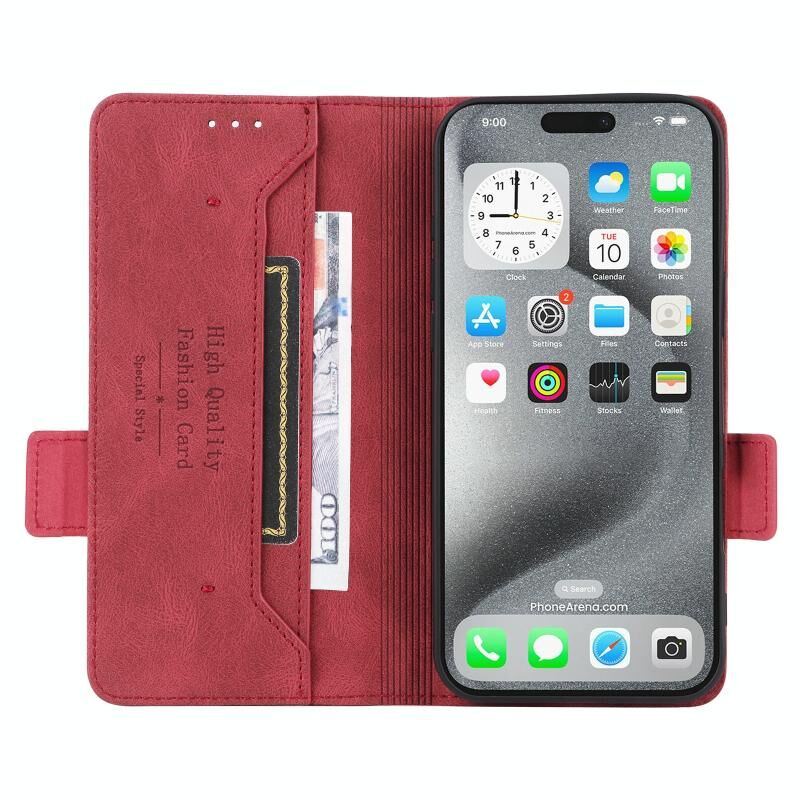 Για iPhone 16 Pro Μαγνητικό κούμπωμα Δερμάτινη θήκη τηλεφώνου (κόκκινο)