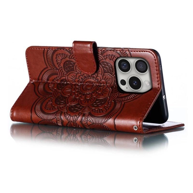 Θήκη τηλεφώνου από δέρμα με οριζόντιο άνοιγμα και ανάγλυφο σχέδιο Mandala για iPhone 16 Pro (Μπλε)