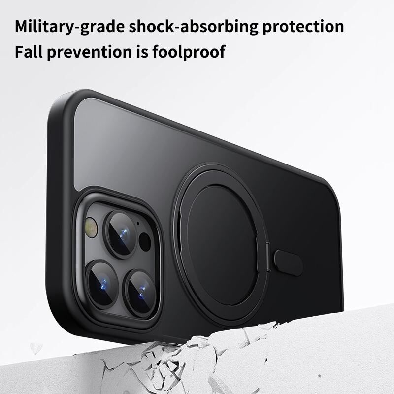 Θήκη κινητού τηλεφώνου με μαγνητική βάση MagSafe, περιστρεφόμενη κατά 360 μοίρες, ματ υφή για iPhone 16 Pro Max (Μαύρο)
