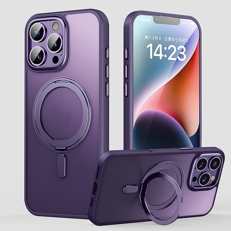 Θήκη κινητού τηλεφώνου με μαγνητική βάση MagSafe, περιστρεφόμενη κατά 360 μοίρες, ματ υφή για iPhone 16 Pro Max (Μωβ)
