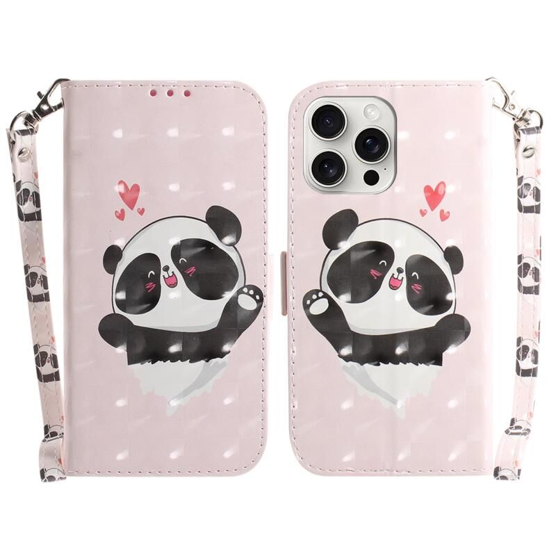 Θήκη τηλεφώνου δερμάτινη, οριζόντια, αναδιπλούμενη, έγχρωμη 3D για iPhone 16 Pro Max (Heart Panda)